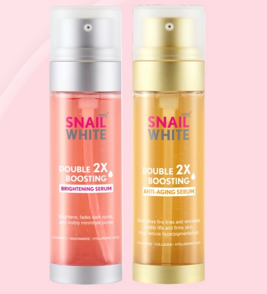 Enjoy two potent youth-boosting formulas in one with SNAILWHITE Double Boosting Anti-Aging Serum and SNAILWHITE Double Boosting Brightening Serum.