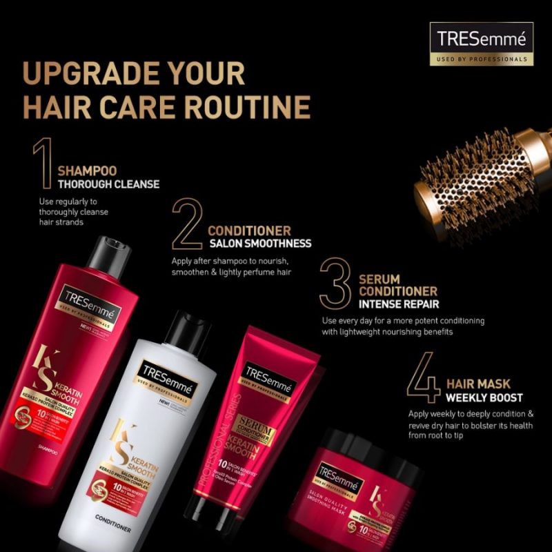 TRESemmé Anti-Frizz Shampoo and Hair Conditioner: TRESemmé’s best ever anti-frizz professional system gives salon-quality, straight hair after every wash, transforming it to look sleek and smooth. Formulated with KERA10 PROTEIN COMPLEX, this hair straightener shampoo cleanses thoroughly and deeply penetrates dry and frizzy hair, giving you 10 salon benefits in one wash.